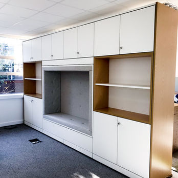 There are plenty of options to enhance our storagewall, such as display units, media alcoves, soft-seating areas, printer bridges, and more.