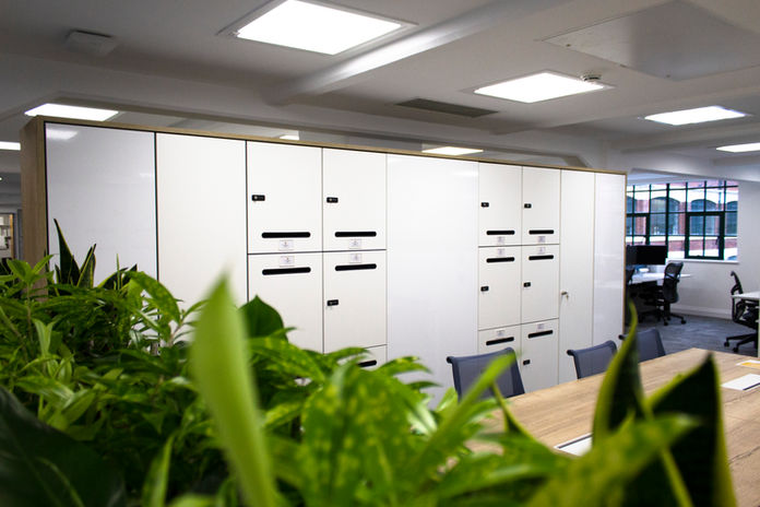 A striking blend of general storage, lockers, display units, media alcoves, and a print station - all brought together in a cohesive, functional design.